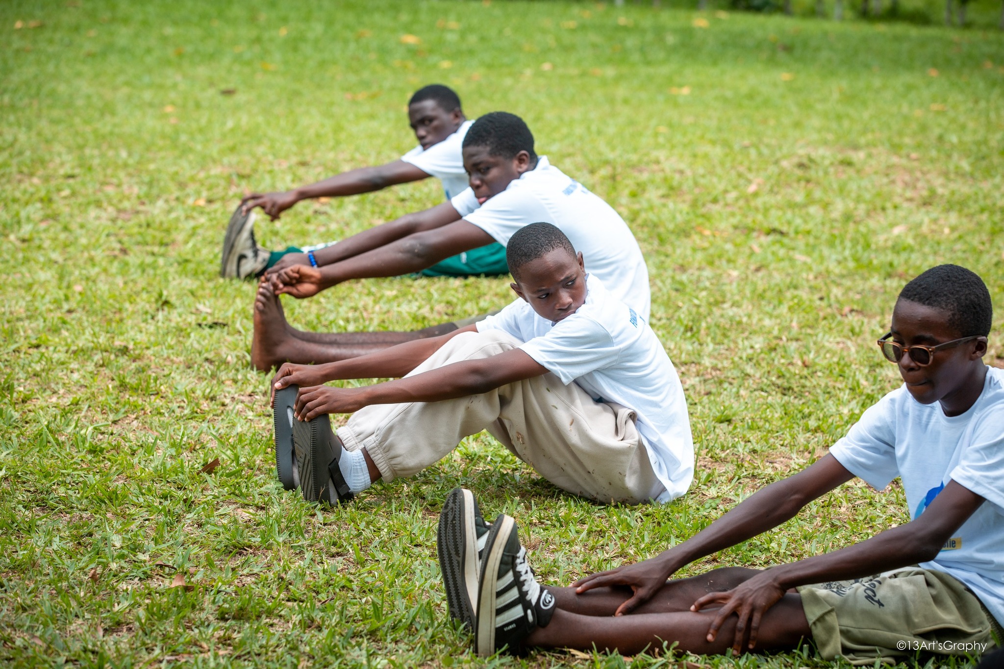 Retour sur la journée 4 du Camp de l'orientation scolaire 2025. 1ere étape de la journée: séance de sport avec le Coach Kimara, en images.